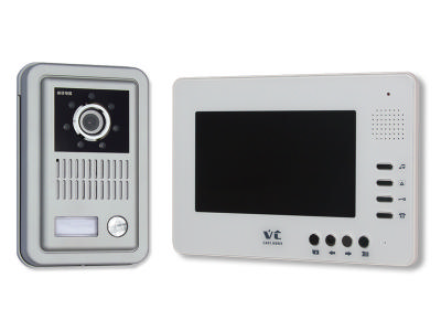 自动拍照别墅可(kě)视门铃 VT-PS27 7寸数字高清液晶屏/7寸模拟屏 1台门口机 1台室内机 1台DC15V電(diàn)源 1条四芯10米联接線(xiàn) 室内机铁挂板 安(ān)装(zhuāng)螺钉配件 流線(xiàn)型设计,时尚美观 可(kě)视、对讲、彩铃、开锁功能(néng)